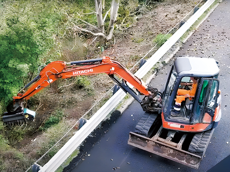道路脇の草刈りにも活躍! KANEKO重機の小型油圧ショベル用マルチャー「C4」