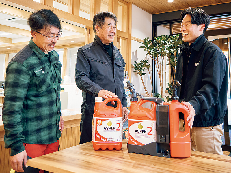 田邊 混合燃料と林業者の健康問題は、今でも日本での認知は遅れていると感じています。ヨーロッパでは当たり前になっている、労働者の安全や健康という一番基本的な部分は見直していきたいですね。私自身、健康や環境に配慮した燃料(ASPEN2)を使う安心感が仕事への意欲向上につながっています。労働環境がより良くなるのは人材獲得の面からも前向きな話です。