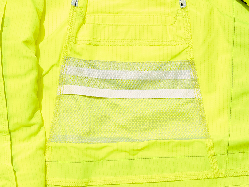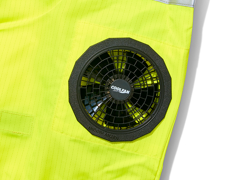 樹上作業時に着用が義務付けられているフルハーネスだが、夏場の着用はベルトで服が密着するため熱がこもりやすく、熱中症の危険も。本製品はハーネス装着を前提とした構造を採用。ファンから取り込んだ風が背中や首筋へ効率よく通り抜け、作業性を損なわず体温上昇を抑制する。Class1の視認性も備え、過酷な環境下での「安全」と「快適」を両立している。